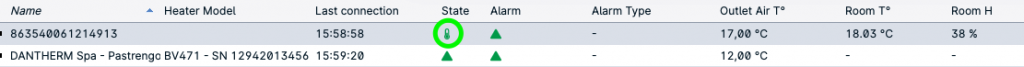 Once the function is enabled, the heater status icon will turn into a green thermometer or in a water drop, according to the selected control mode: