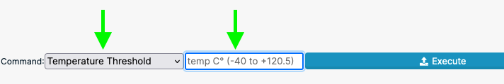 To set the target temperature, use again the Command Manager window and select the “temperature threshold” command. Set the desired temperature in the textbox and then click execute.