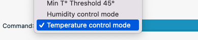 If Humidity control mode was selected, the target humidity can be selected using “Humidity Threshold” command: